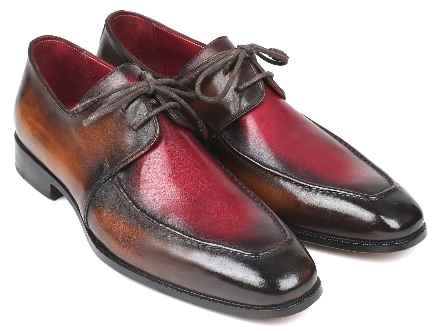 Paul Parkman Brown & Bordeaux Dual Tone Apron Derby Shoes (ID#33BB12)