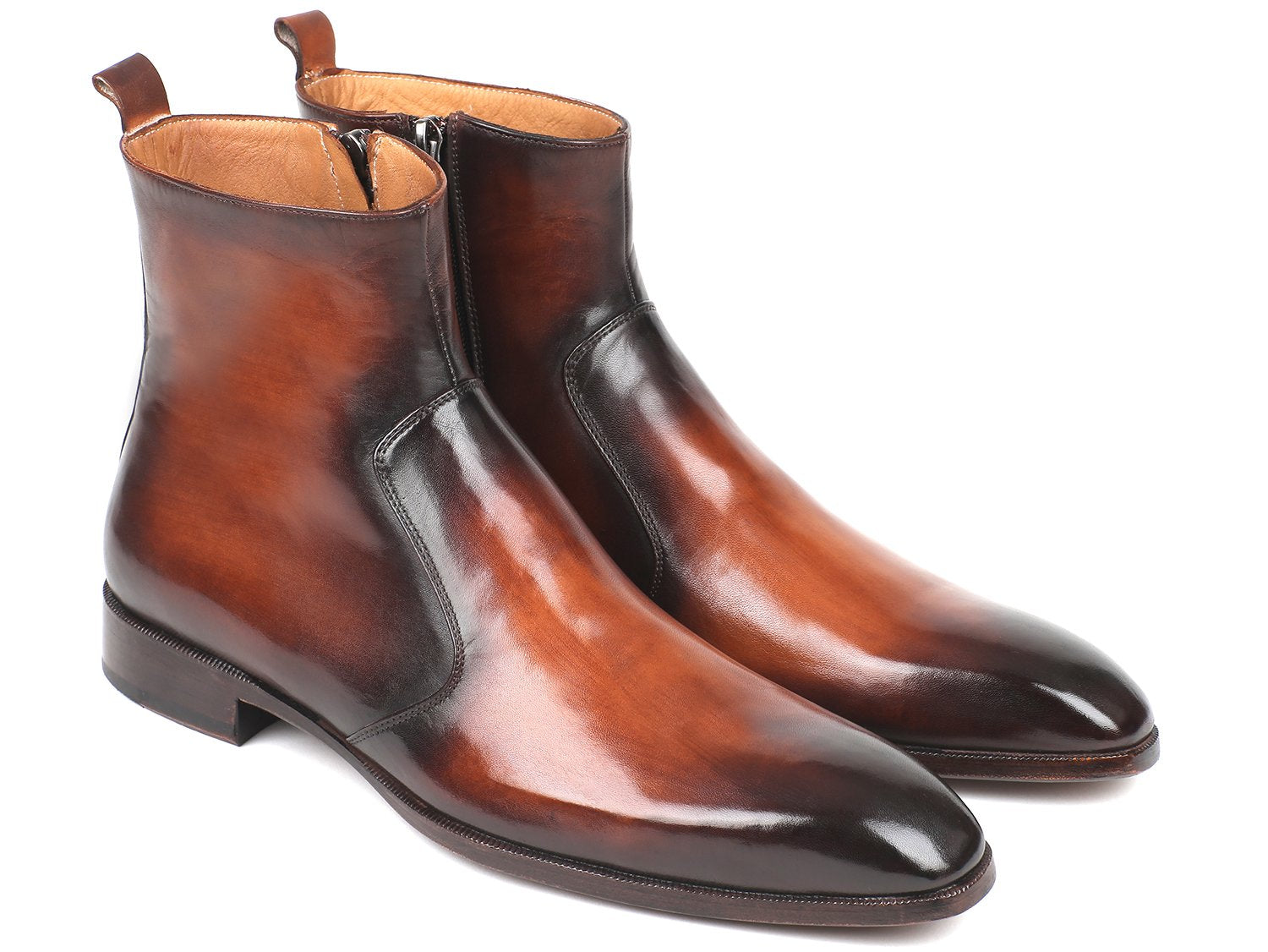 Paul Parkman Brown Burnished Side Zipper Boots (ID#BT486-BRW)