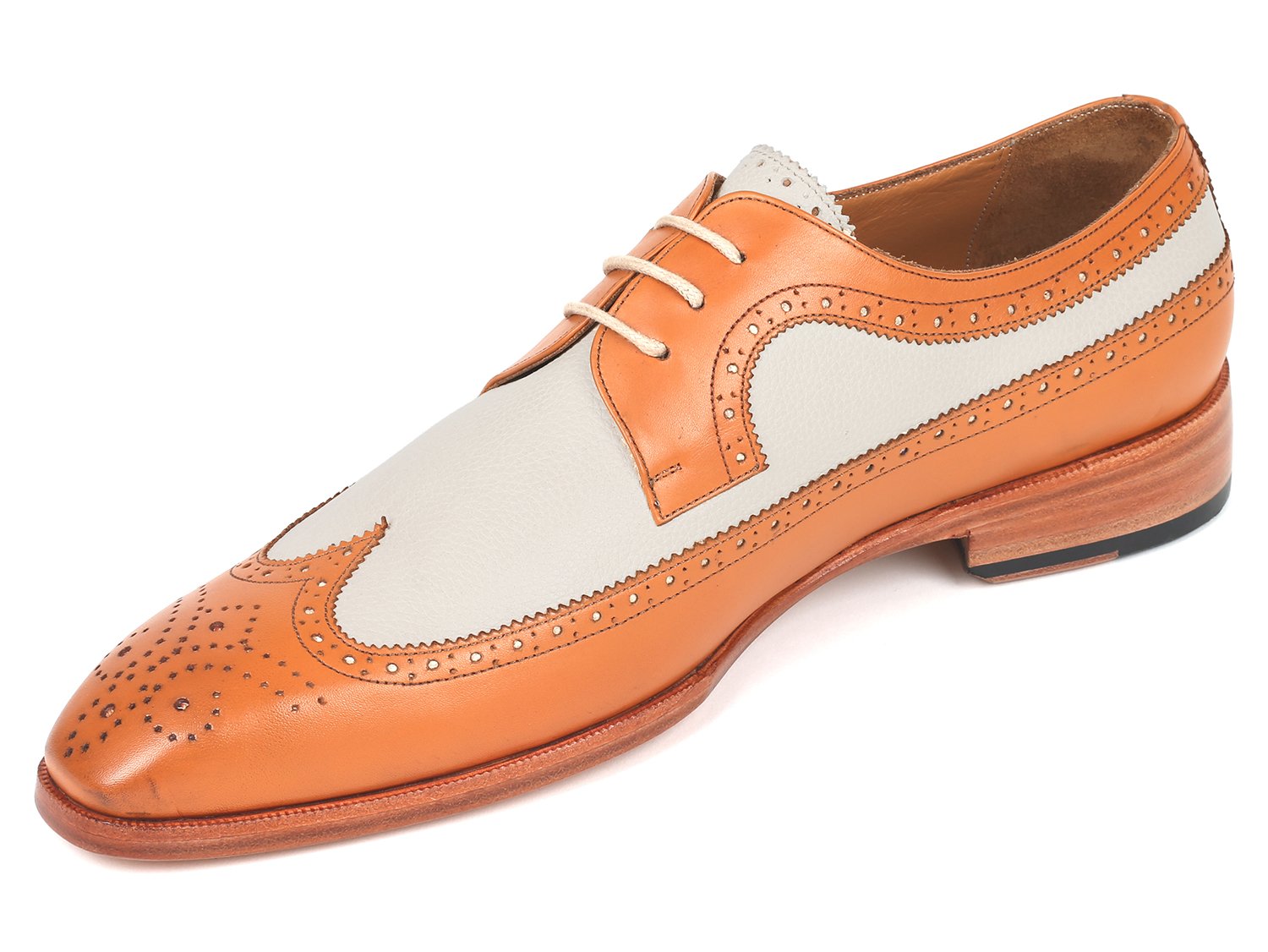 Paul Parkman Dual Tone Wingtip Derby Shoes Cognac & Cream (ID#924CC55)