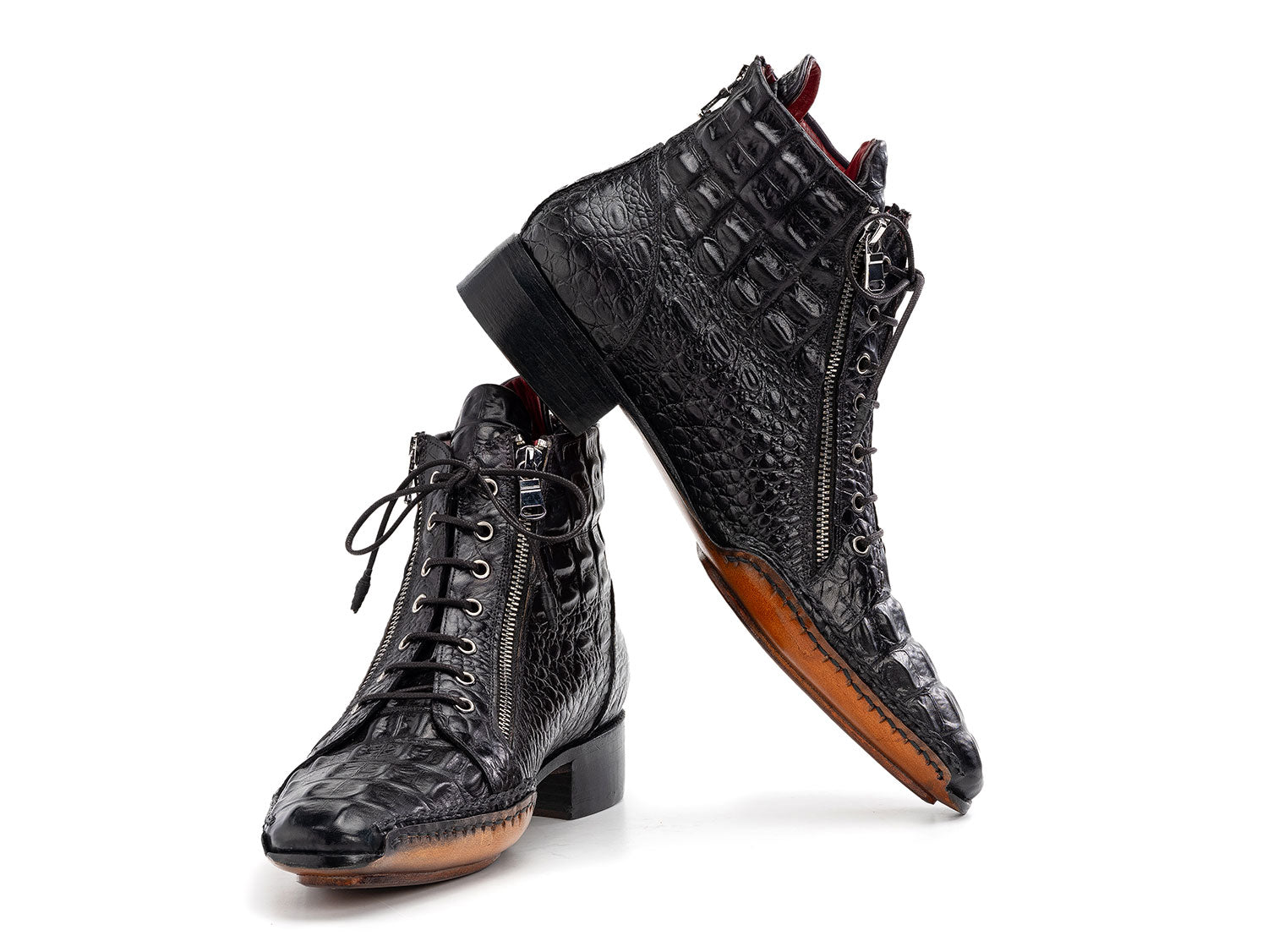 Paul Parkman Black Crocodile Textured Leather Men's Zipper Boots (ID#88APT68)
