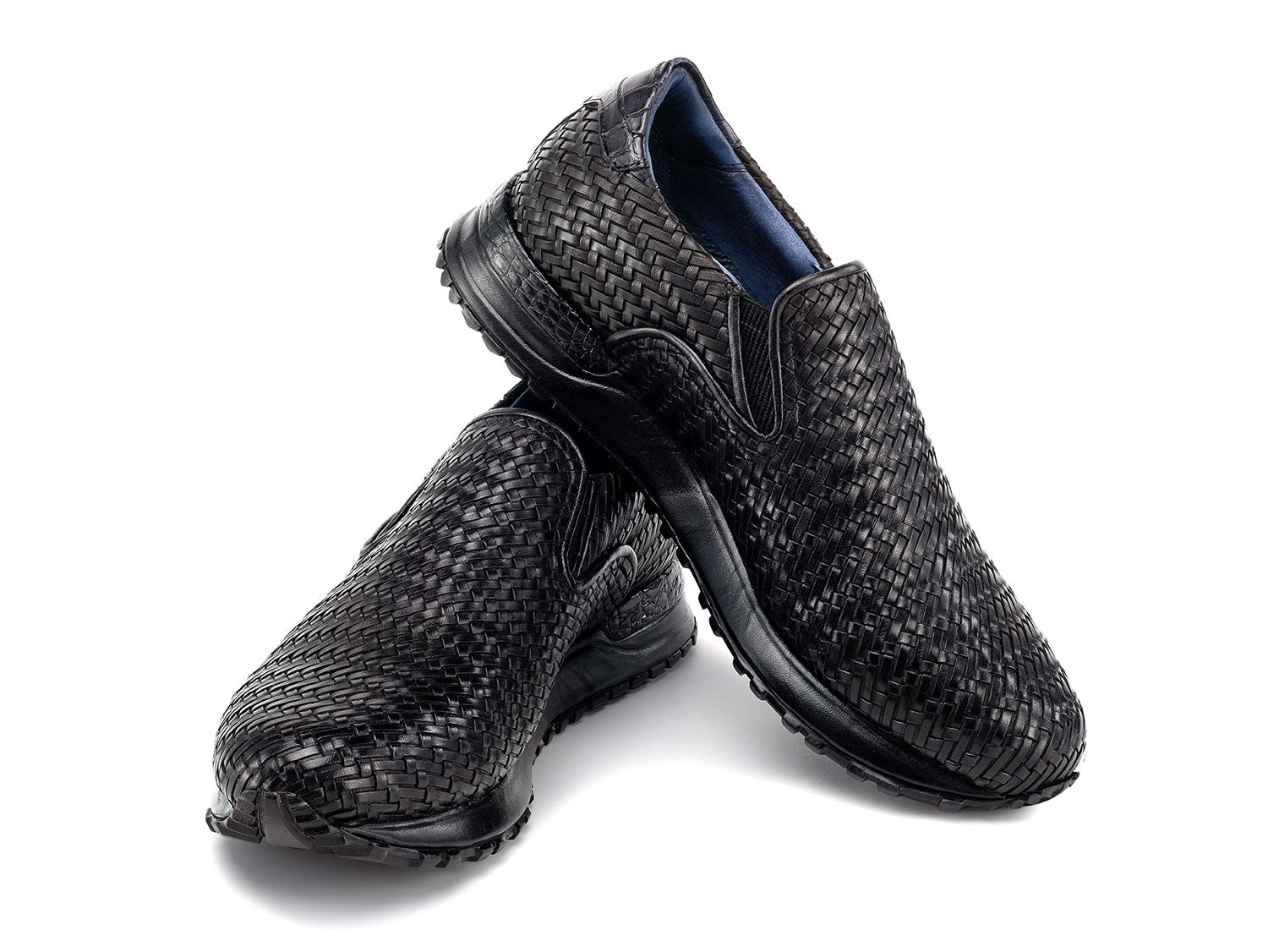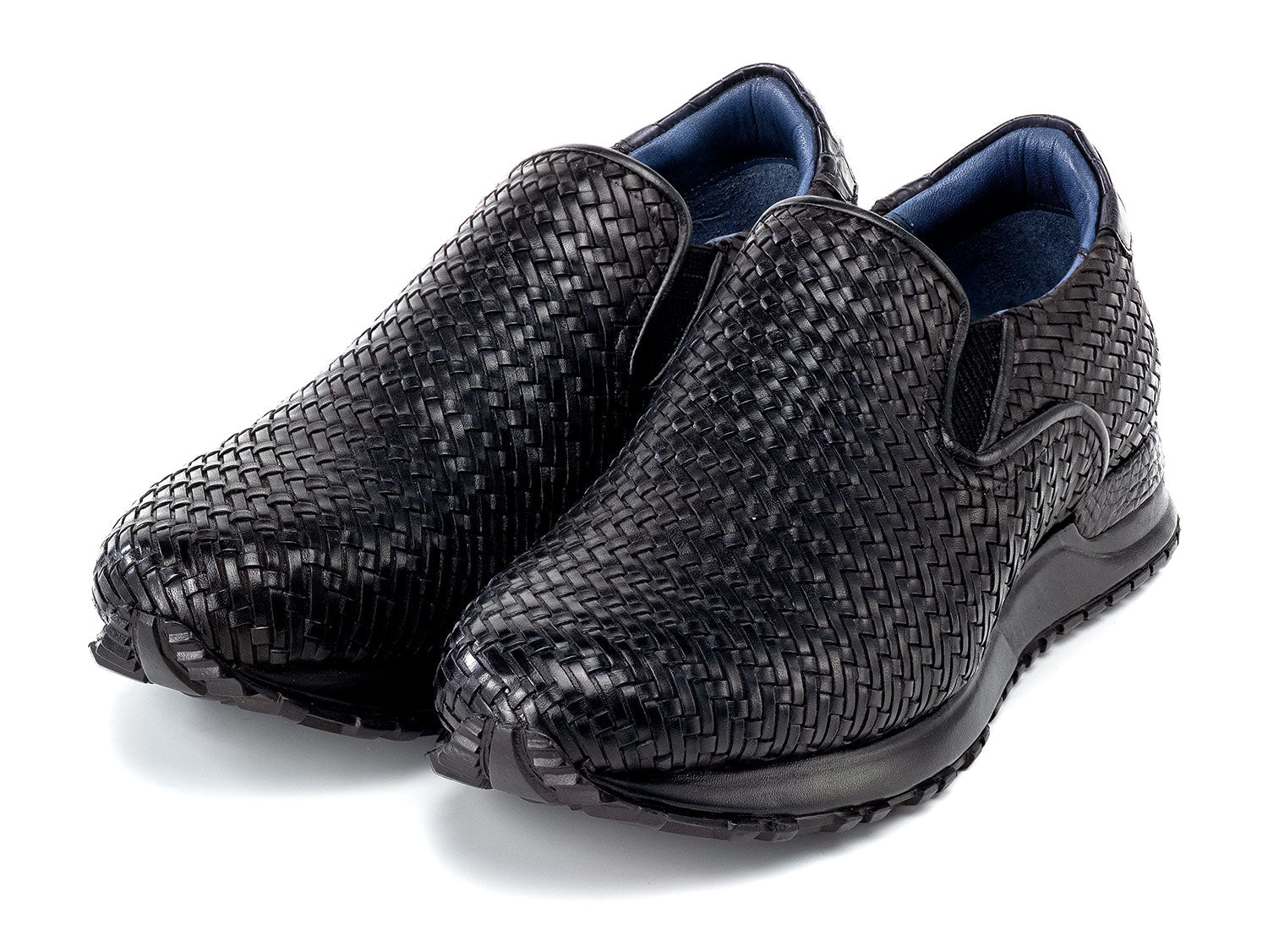 Paul Parkman Men's Black Woven Leather Slip-On Sneakers (ID#LW204BLK)