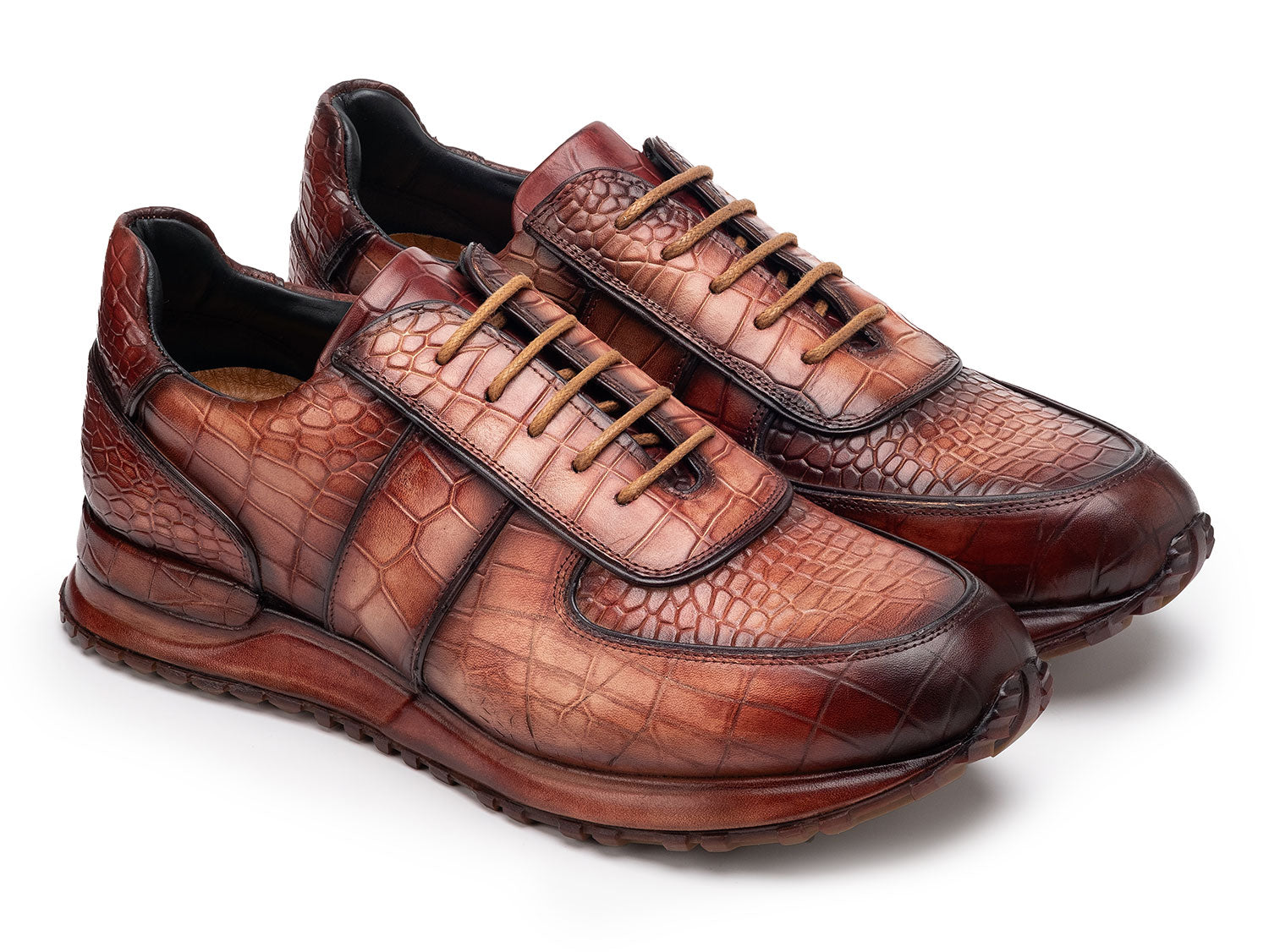 Paul Parkman Men's Brown Burnished Textured Leather Sneakers (ID#LB704CML)