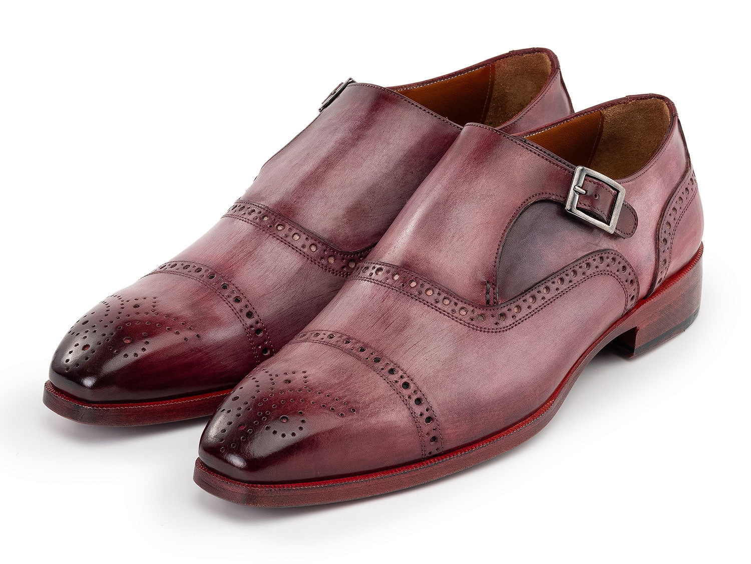 Paul Parkman Men's Cap Toe Monkstrap Shoes Burgundy (ID#65BUR28)