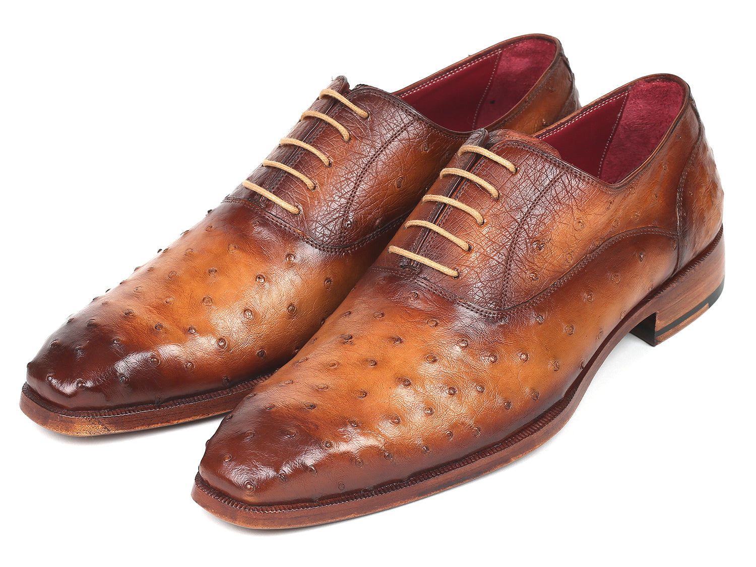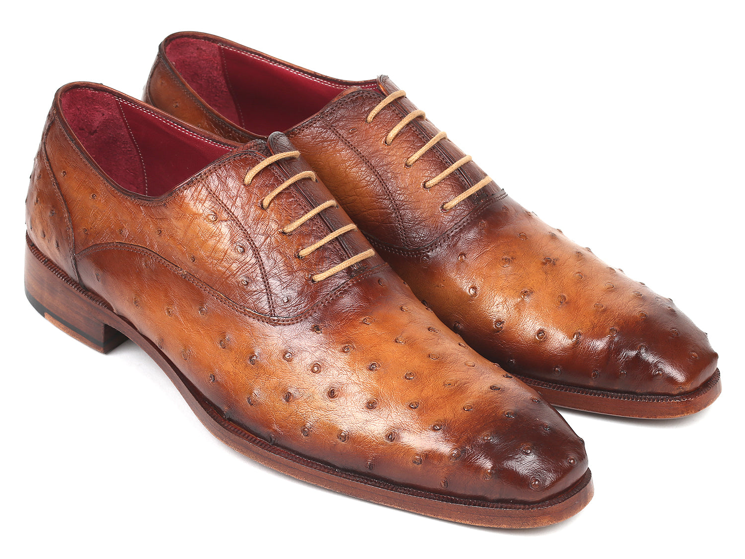 Paul Parkman Men's Genuine Ostrich Oxfords Light Brown (ID#257XS-CML)