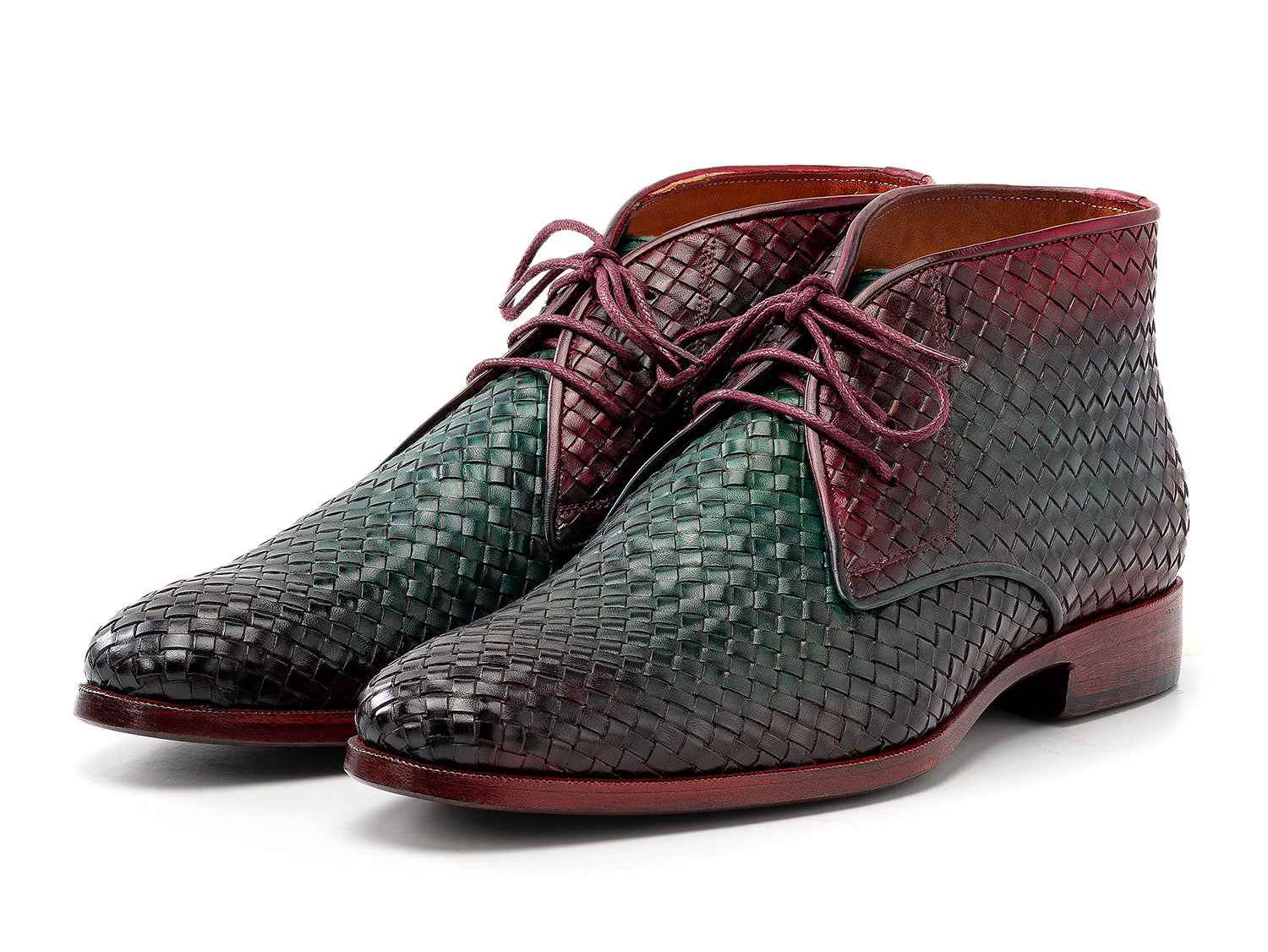Paul Parkman Men's Green & Purple Woven Leather Chukka Boots (ID#CK82WGP)