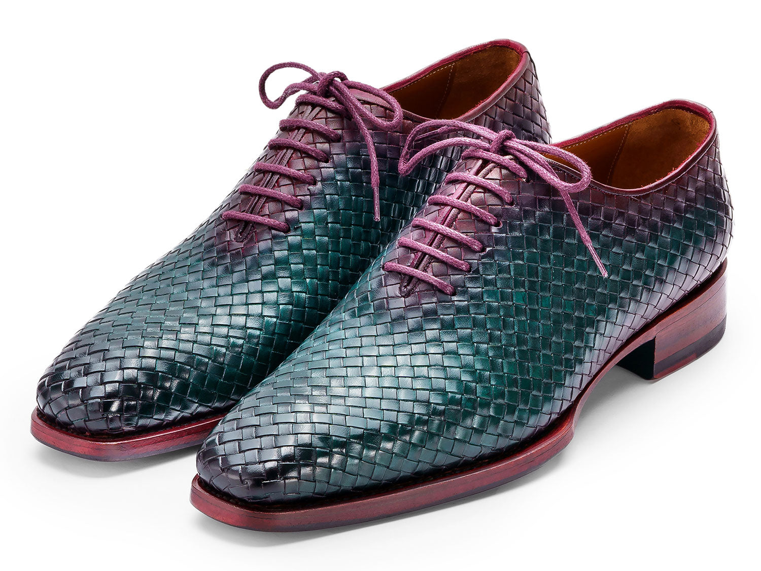 Paul Parkman Men's Green & Purple Woven Leather Oxfords (ID#044WN77)