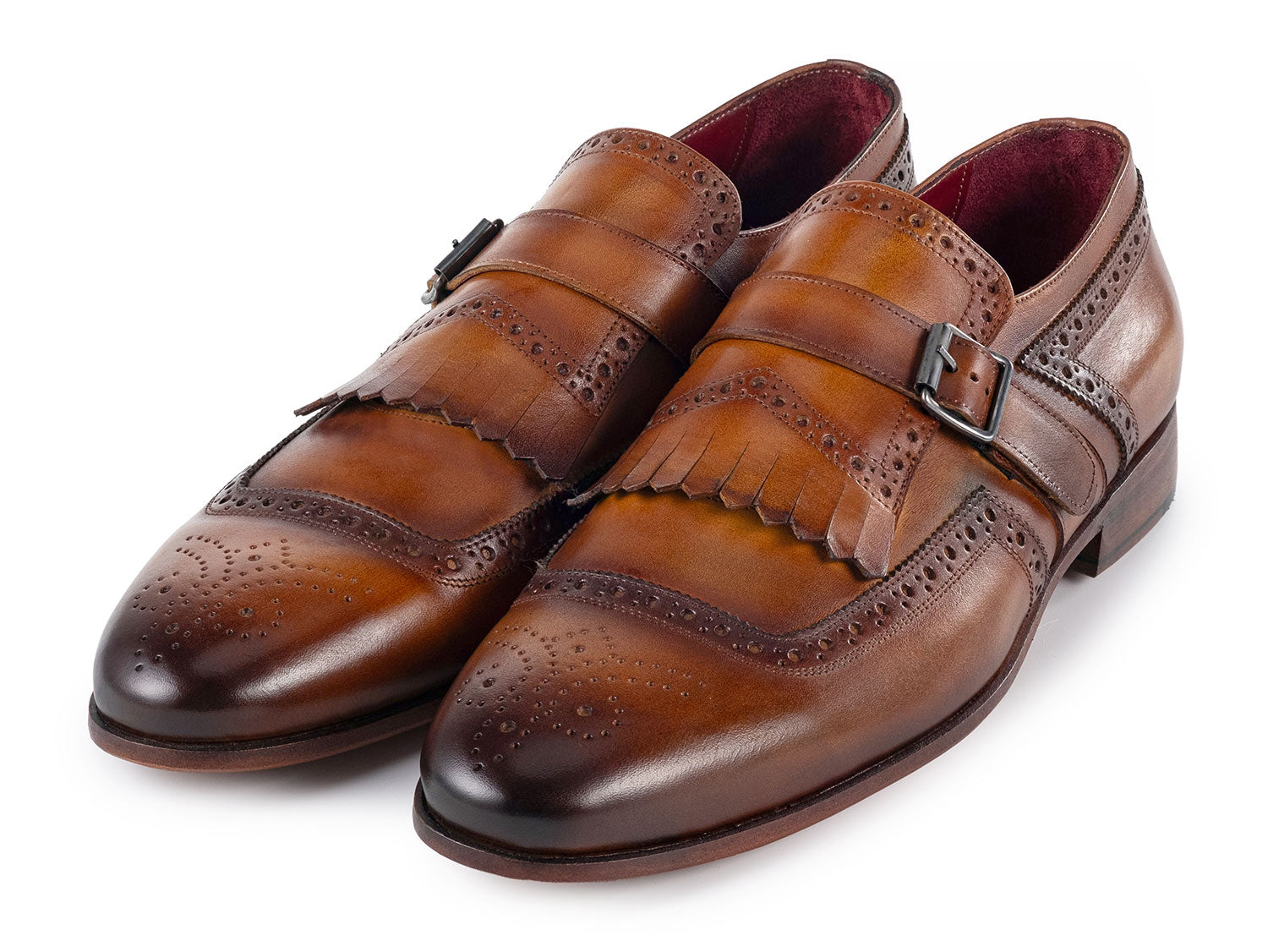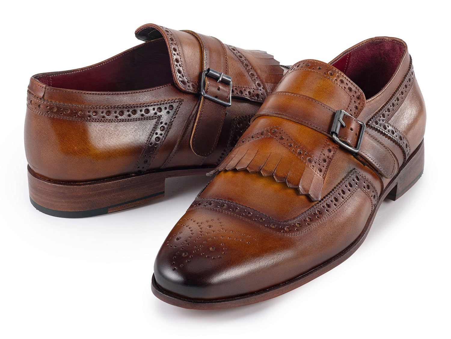 Paul Parkman Men's Kiltie Monkstrap Shoes Brown Leather (ID#12BR95)