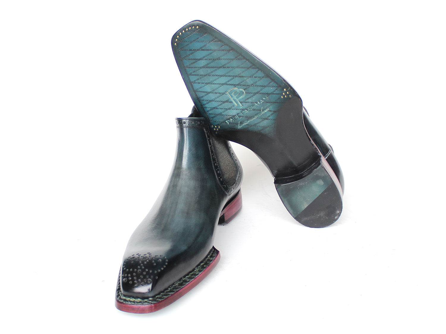 Paul Parkman Men's Norwegian Welted Chelsea Boots Blue Burnished Leather (ID#8847-BLU)