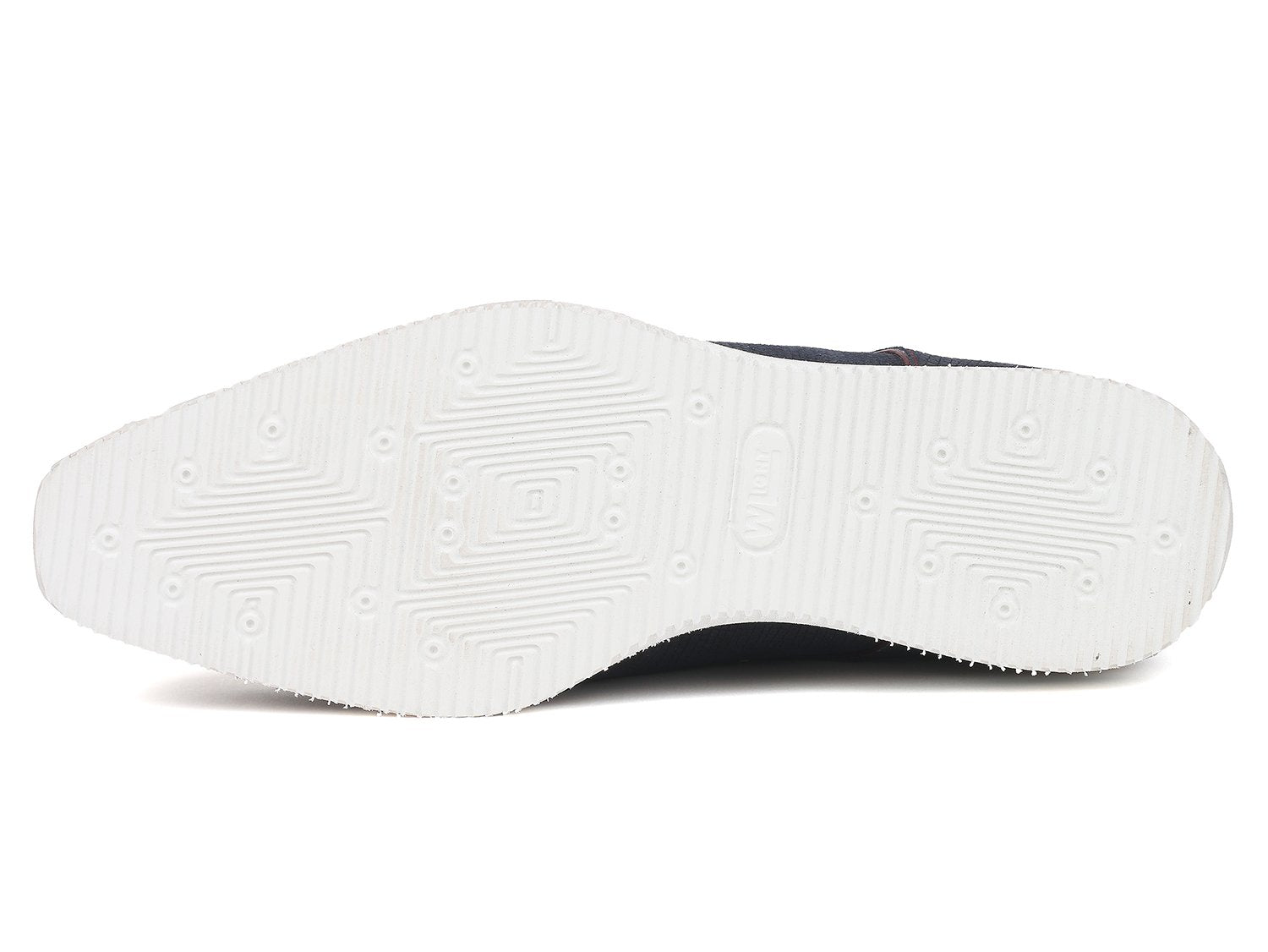 - Embossed navy suede upper