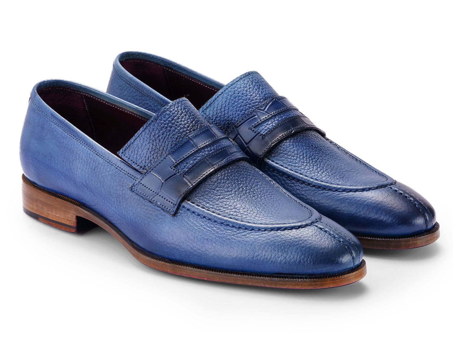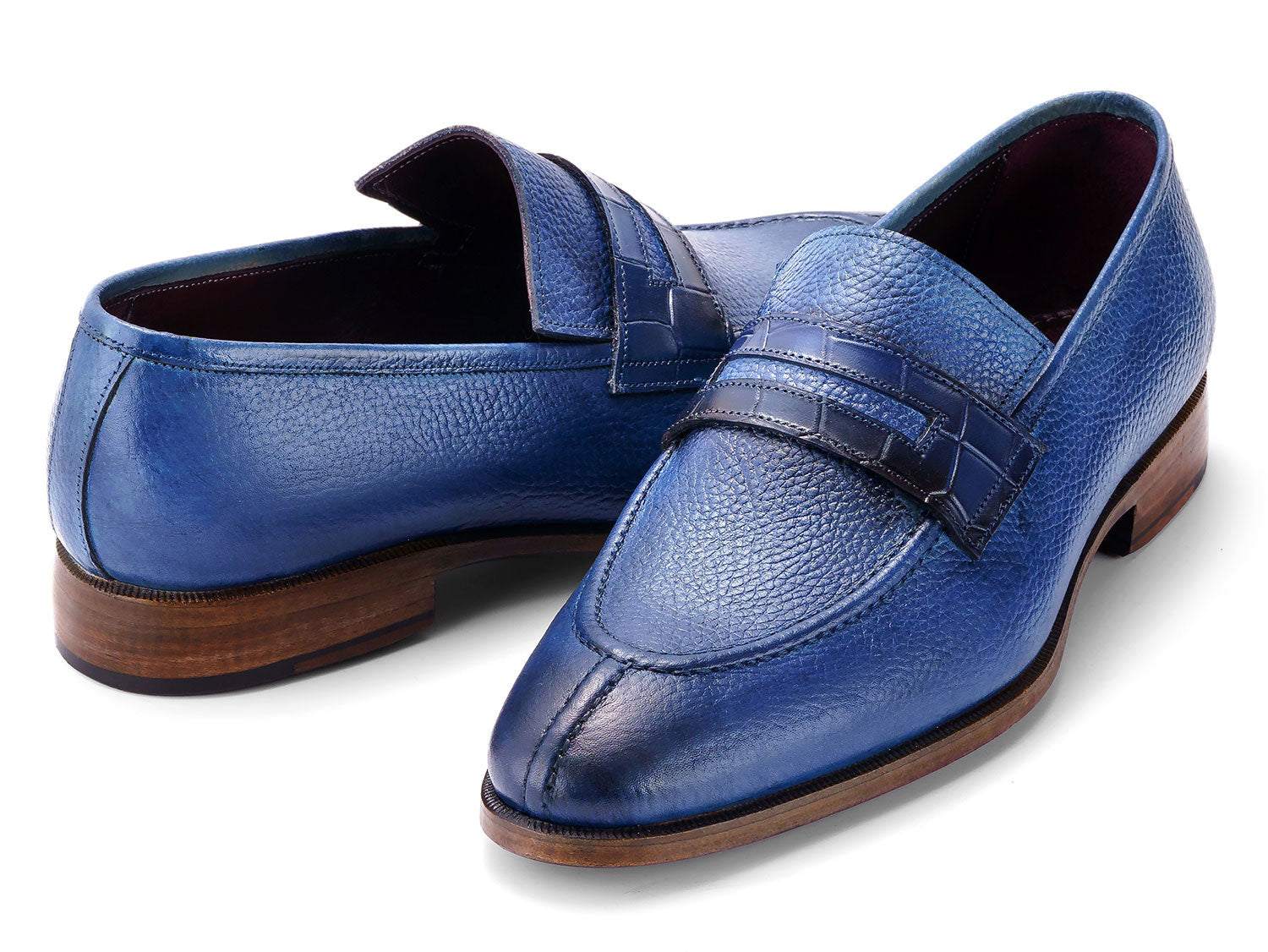 Paul Parkman Men's Split Toe Loafer Shoes Blue (ID#694BL65)
